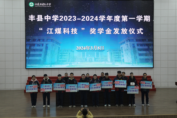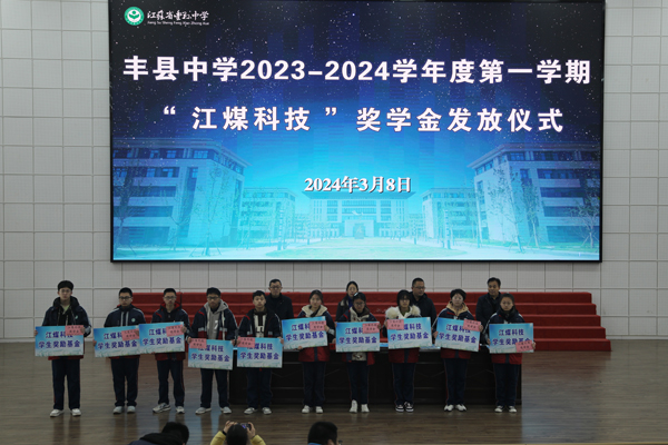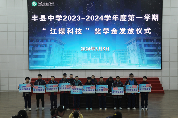 3月8日上午,豐縣中學舉行2023-2024學年度第一學期“江煤科技獎學金”發放儀式。豐縣中學黨委副書記、副校長劉素芹,豐縣中學副校長馬輝,徐州江煤科技有限公司副董事長渠慎月,以及獲得獎學金的同學和部分學生代表出席活動。教務處主任邢長印主持頒獎儀式。