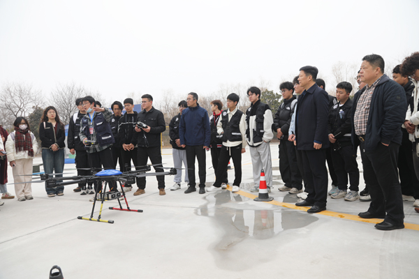 在無人機飛行實訓基地,教練員現場指導學生們體驗無人機飛行項目。