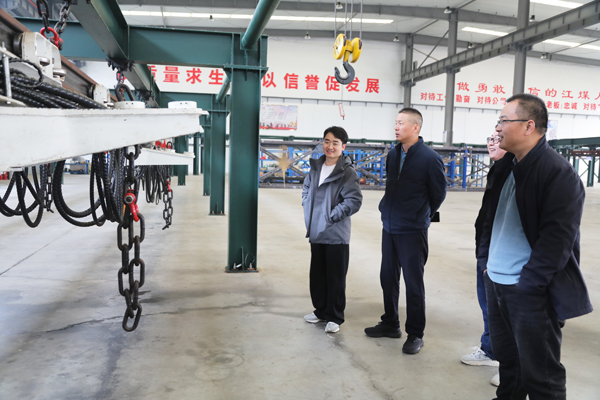 考察過程中,總工程師廖澤巨介紹了公司單軌吊産品銷售、生産、技術性能和運行情況等,并與領導一行就更多技術細節問題進行了深入探讨。