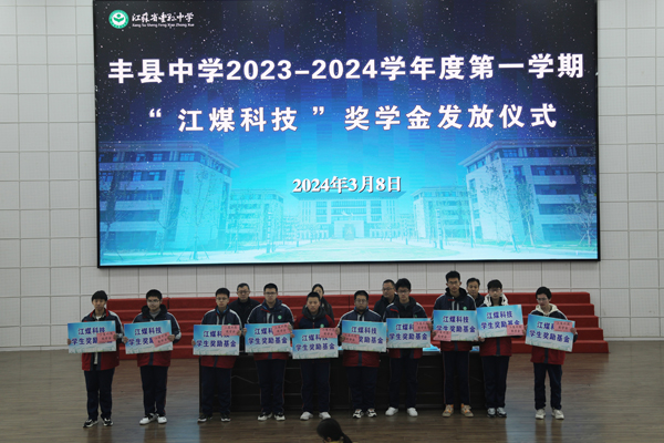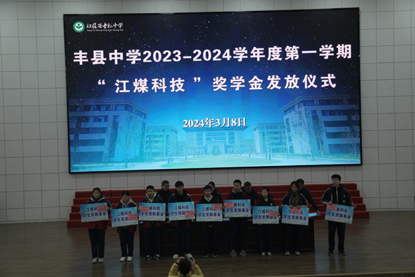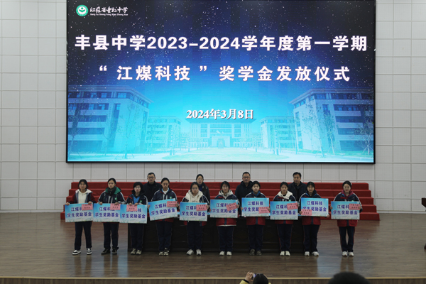 3月8日上午,豐縣中學舉行2023-2024學年度第一學期“江煤科技獎學金”發放儀式。豐縣中學黨委副書記、副校長劉素芹,豐縣中學副校長馬輝,徐州江煤科技有限公司副董事長渠慎月,以及獲得獎學金的同學和部分學生代表出席活動。教務處主任邢長印主持頒獎儀式。