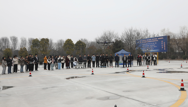 在無人機飛行實訓基地,教練員現場指導學生們體驗無人機飛行項目。